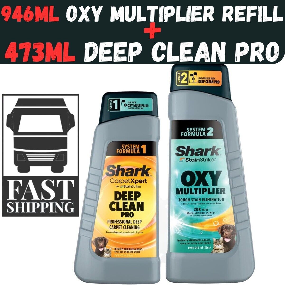 Shark 4970YY200UK StainStriker Formula Bundle 946ml Oxy Multiplier Refill and 473ml Deep Clean Pet Carpet Extractor Solution, 1.42 liters, Black