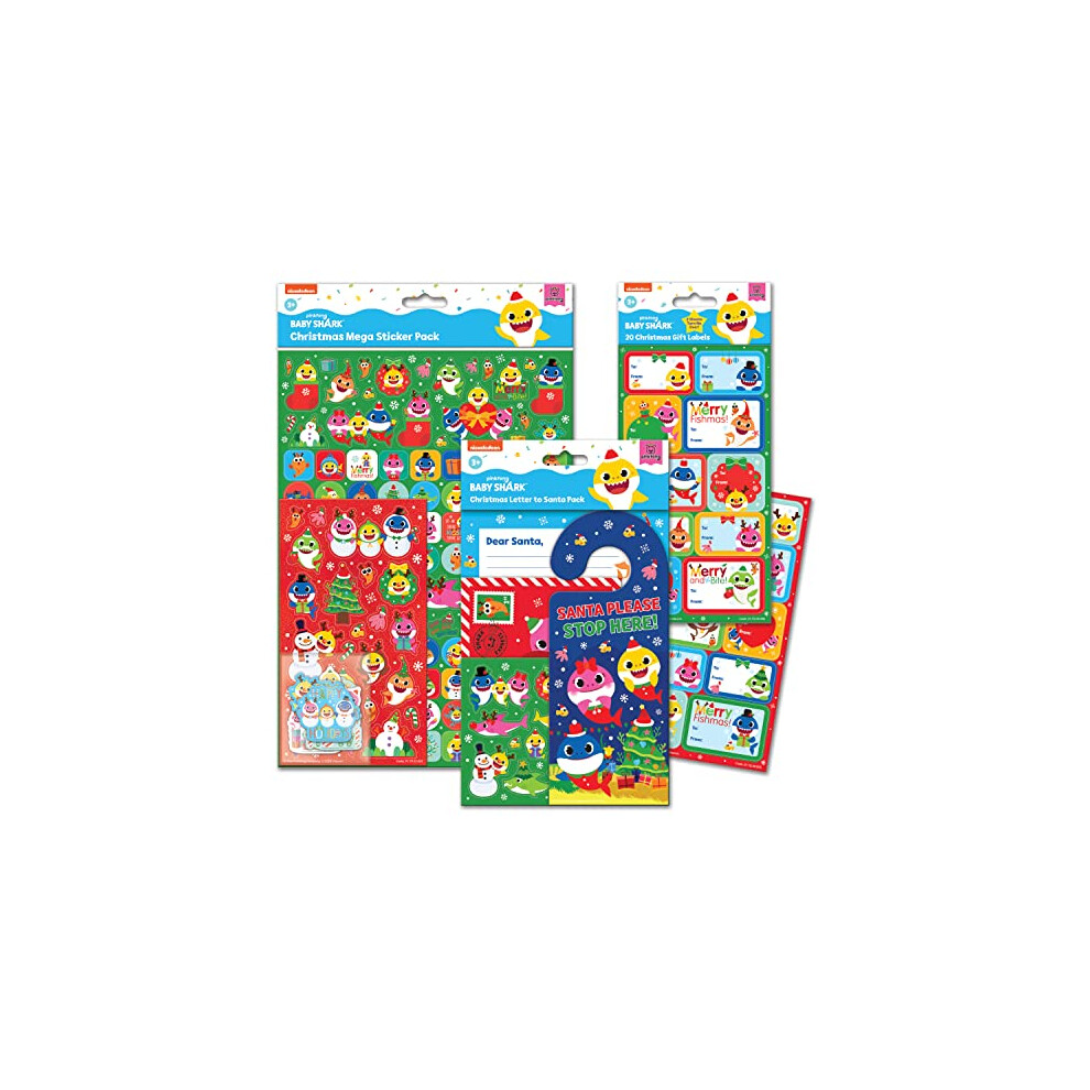 Baby Shark Mega Christmas Sticker Bundle, including Mega Christmas Sticker Pack, Letter to Santa Pack and Gift Labels