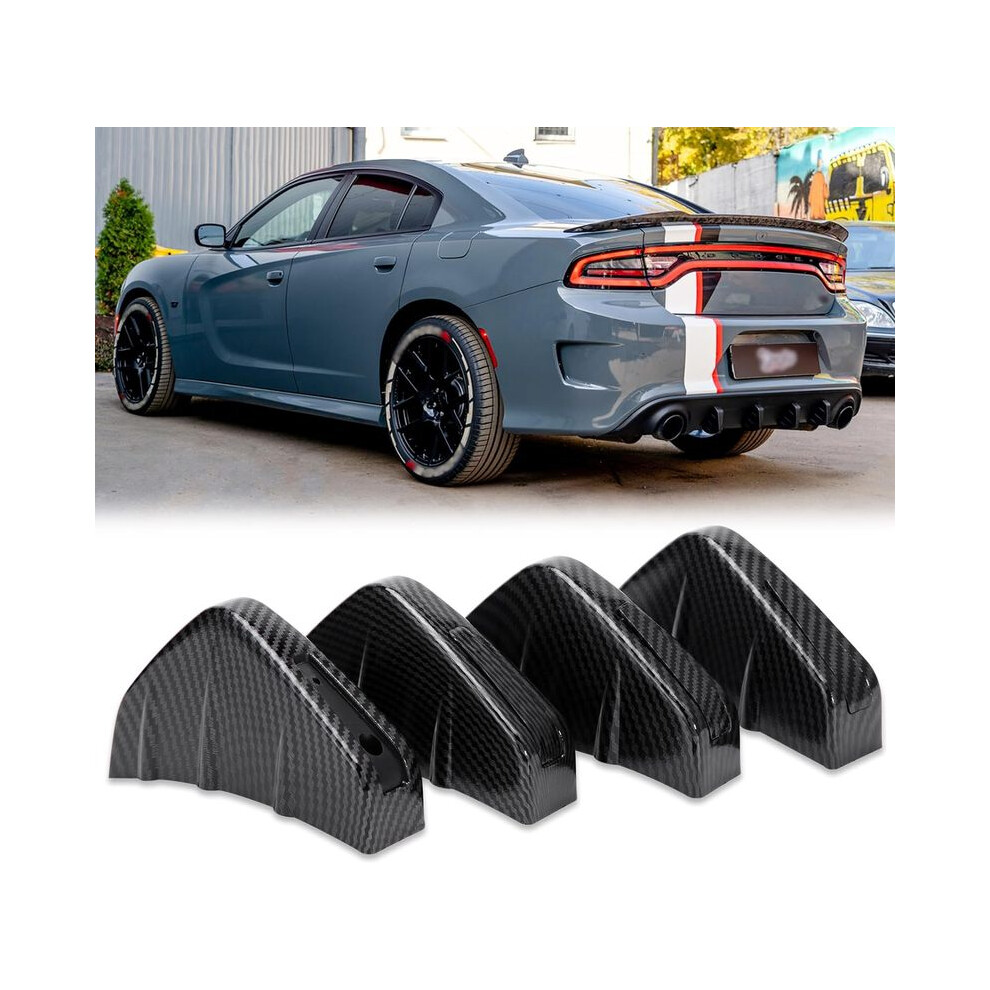 (Carbon Fiber Look) 4pcs/set Car Rear Lower Bumper Wing Lip Diffuser Splitter Spoiler Shark Fins Universal Fit