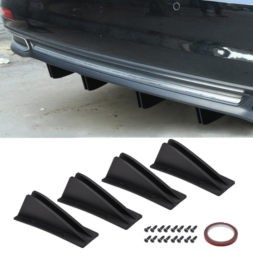 4Pcs Universal Rear Bumper Lip Diffuser Shark Fins Chin Protector Trim Spoiler Black Compatible with Most Vehicles