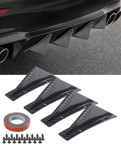 Flaconi Car Rear Bumper Spoilers,Shark Fin Trim Covers Protector Set,Universal Shark Fin Diffuser Spoiler,Accessories for Car,Car Rear Bumper Decoration,Car Modified (Carbon Fibre)