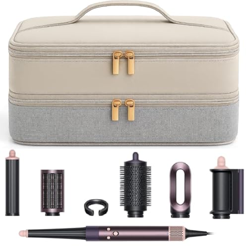 GENCAM Double-Layer Carrying Case for Shark FlexStyle & SpeedStyle, Portable Storage Organizer for Shark FlexStyle FlexFusion/Dyson Airwrap Styler & Attachments, Light Gray