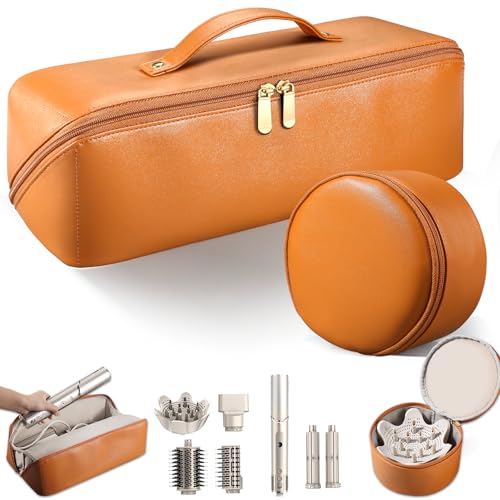 SITHON Travel Carrying Case for Dyson Airwrap Styler/Shark Flexstyle Speedstyle, PU Leather Water Resistant Storage Organizer Bag with Pocket for Dyson Supersonic Hair Dryer (Bag Only) (Champagne)