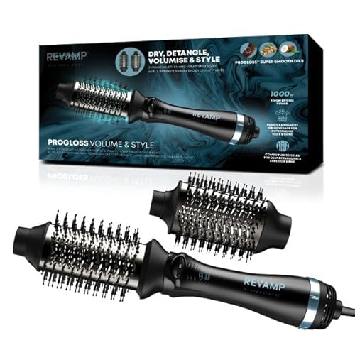 REVAMP Volume & Style Hot Brush Styler - 4 in 1 Blow Dry, Hot Air Styler - Hair Dryer Brush x 2 Heads for Drying, Volumising and Shine - Hairbrush Dryer, Detangling and Styling