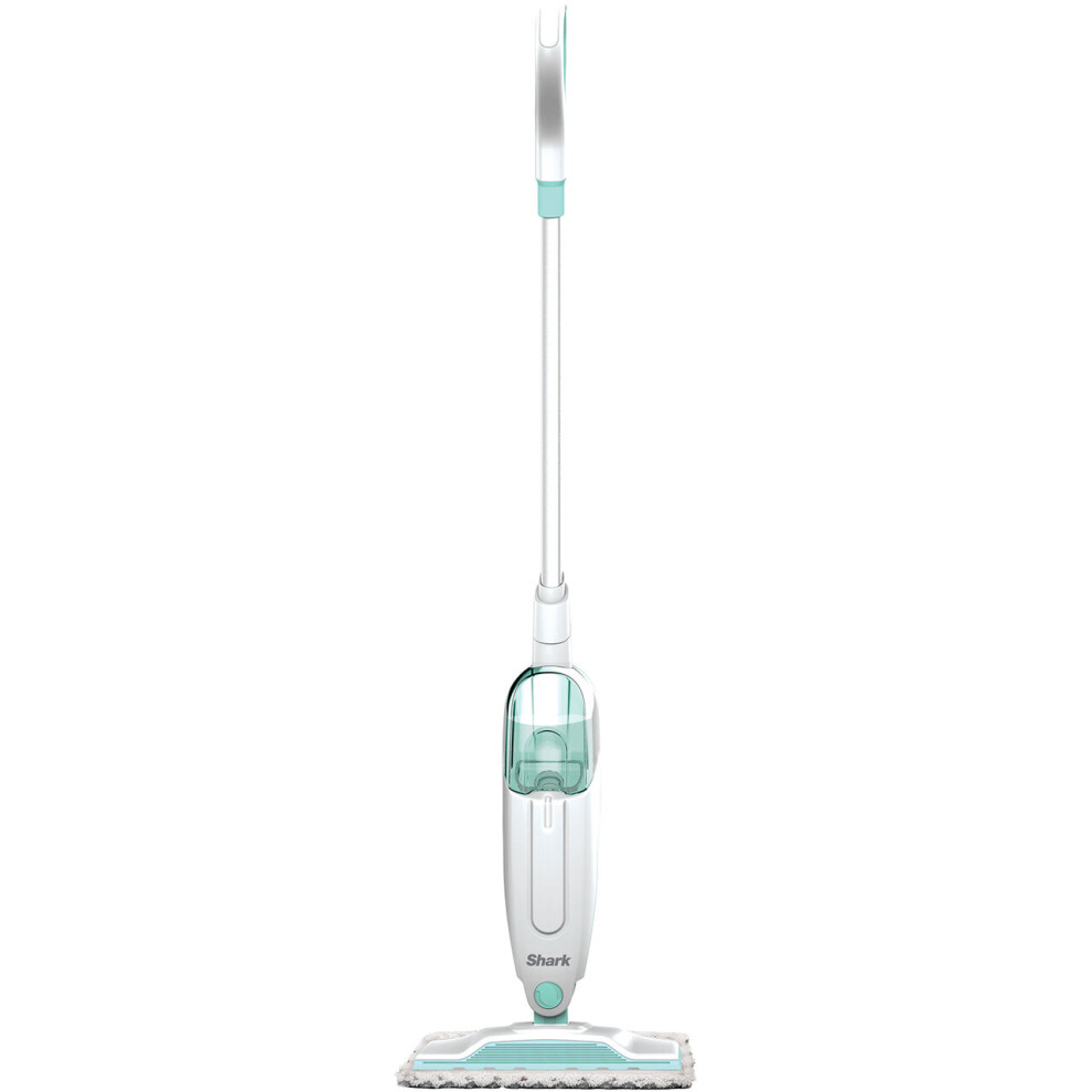Shark Steam Mop, Lightweight Steam Mop for Hard Floors with 2 Machine Washable Cleaning Pads & Fill Flask, 375ml Capacity, 5.5m Power Cord, 30 Second Heat-Up, White & Green S1000UK