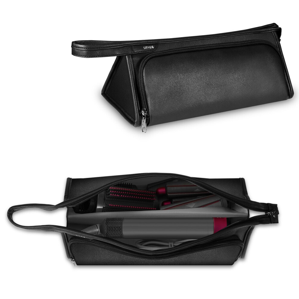 SITHON Travel Carrying Case for Dyson Airwrap Styler/Shark Flexstyle Speedstyle, PU Leather Water Resistant Storage Organizer Bag with Pocket for Dyson Supersonic Hair Dryer (Bag Only)