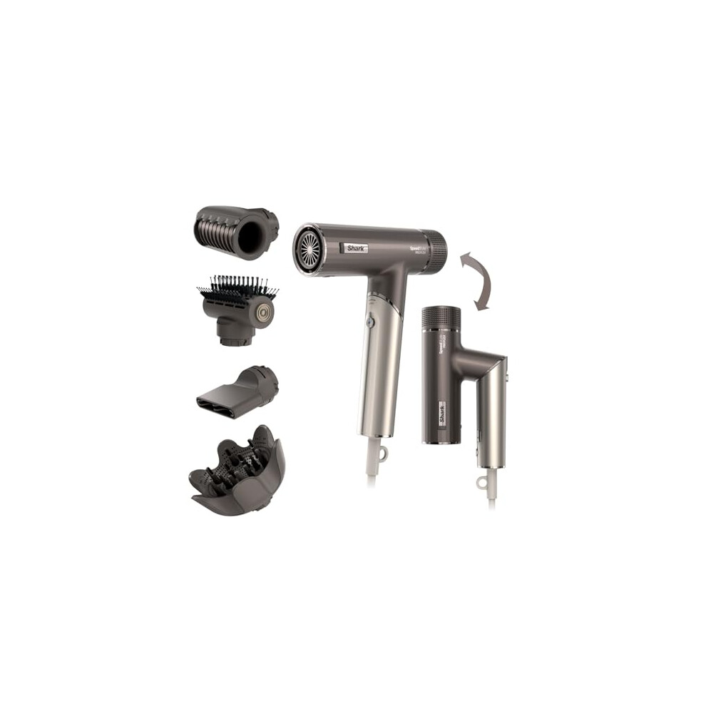 Shark SpeedStyle Pro FLEX Hair Dryer, High Performance High-Velocity Hair-Dryer w/ 4 Styling Attachments, Lightweight, Ionic, No Heat Damage, Folding