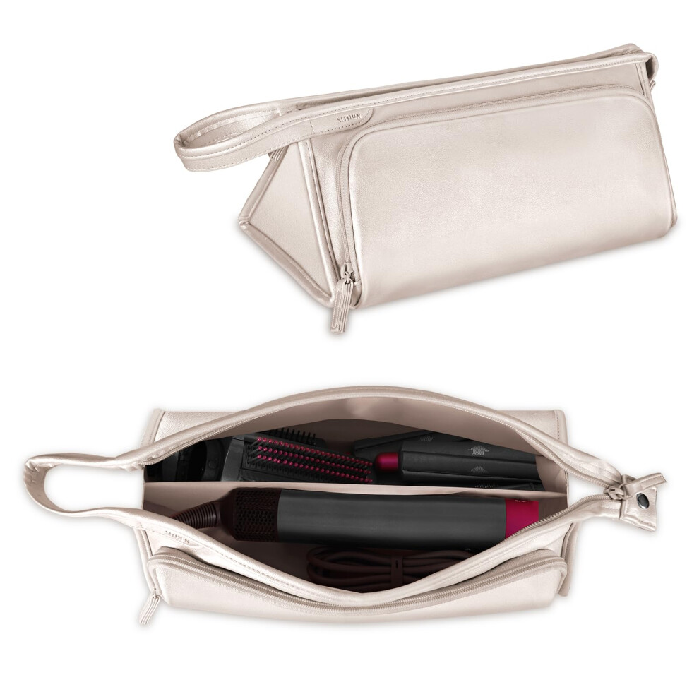 SITHON Travel Carrying Case for Dyson Airwrap Styler/Shark Flexstyle Speedstyle, PU Leather Water Resistant Storage Organizer Bag with Pocket for Dyson Supersonic Hair Dryer (Bag Only) (Champagne)