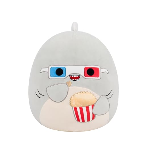 Squishmallows Original 16-Inch Gordon the Grey Shark with 3D Glasses Eating Popcorn | Collectable Cute Plush Toy, Cuddly Toys for Children, Soft Toys, Cute Teddies Suitable for Girls and Boys Ages 3+