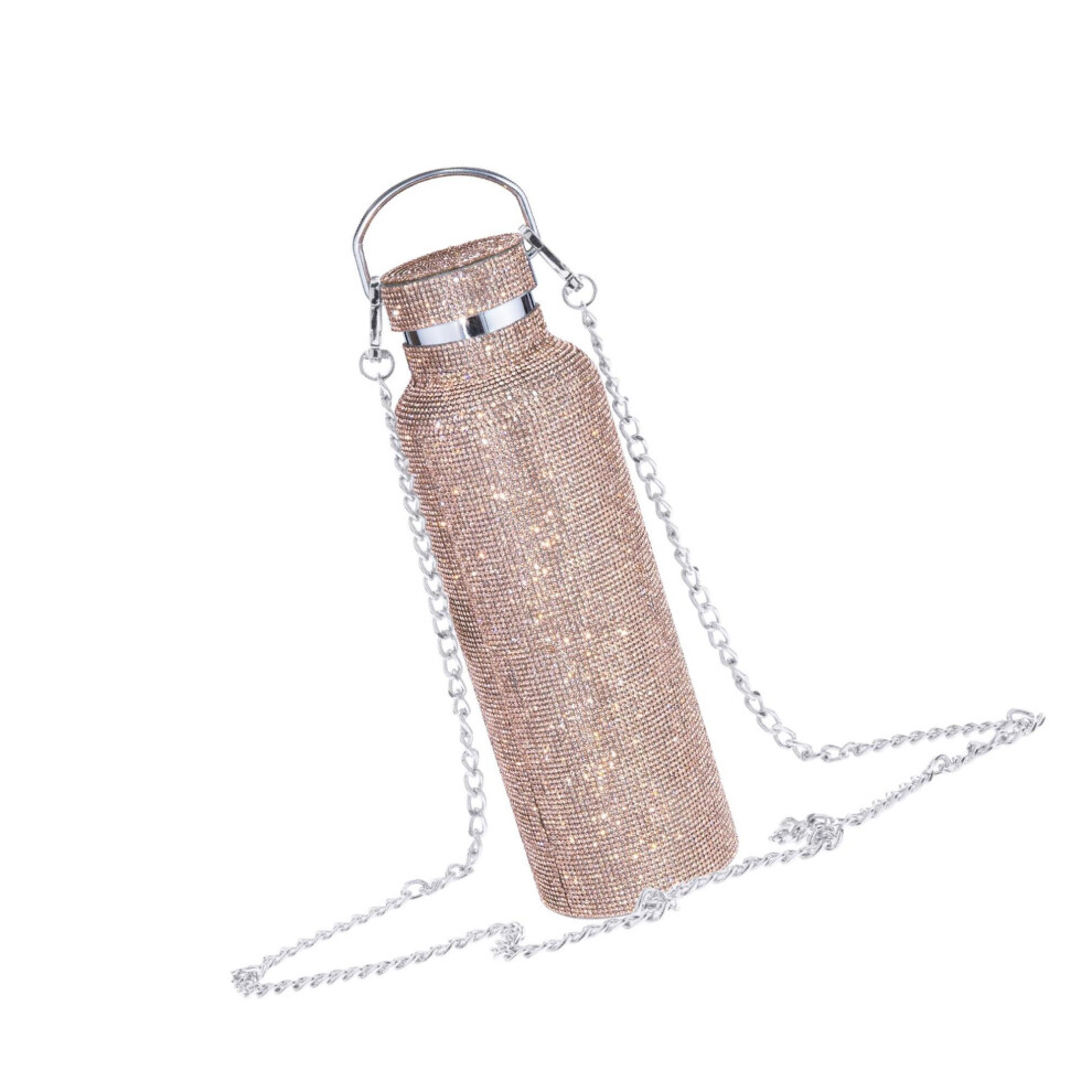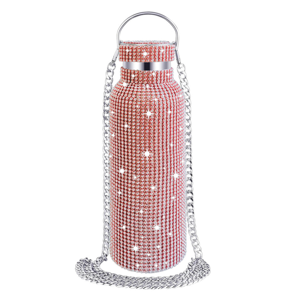 (Rose gold) Sparkling Rhinestone Vacuum Flask Bottle Shiny Strong And Safe To