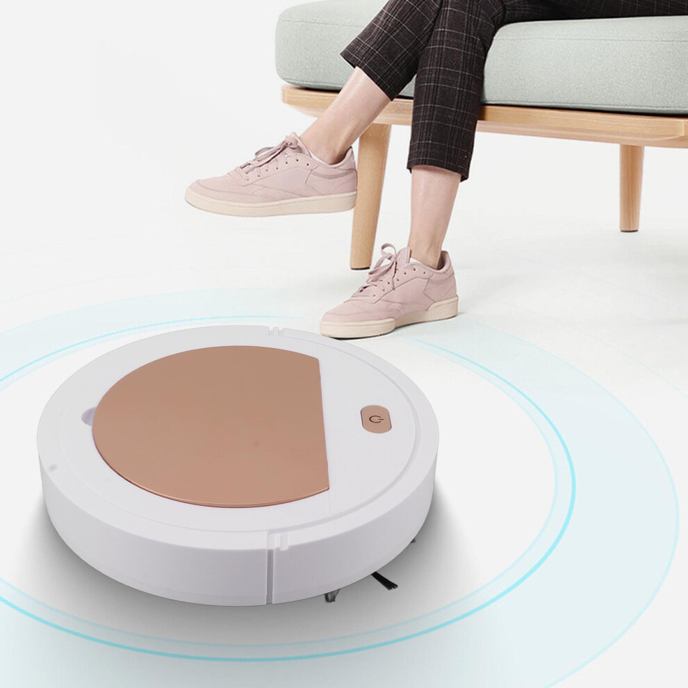 3.7V Robot Vacuum Cleaner 1200mAh Battery USB Charging Ultra Thin Automatic Floor Sweeping Robot Sweeper Rose Gold