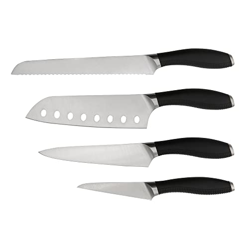 Circulon Sharp Knife Set - 4 Piece Japanese Steel Professional Kitchen Knives Set with Ergonomic Handles, Includes Santoku, Utility, Paring & Bread Knives