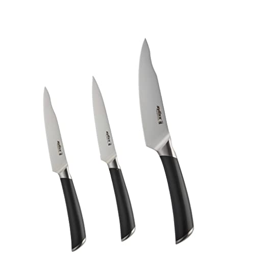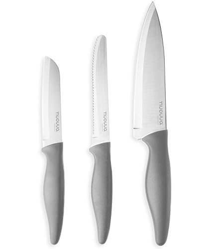 nuovva Sharp Kitchen Knife Set – 3pcs Grey Kitchen Knives – Stainless Steel Non Stick Blades – Includes Chefs Knife, Tomato Knife and Paring Knife
