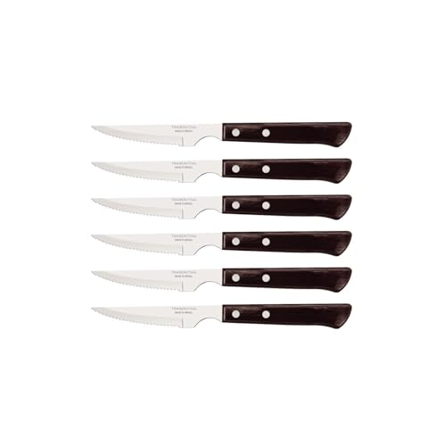 Tramontina Steak Knives Set of 6, Sharp Knife with Wooden Handle, Camping, Kitchen, Rustic, Dishwasher Safe, 29899173