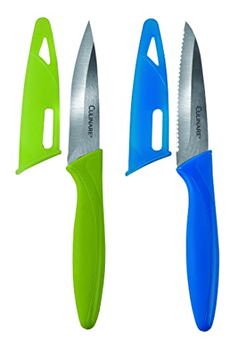 CULINARE C33005 2 Piece Knife Set, Green/Blue, Stainless Steel, 9cm Ultra Sharp Blades, 2 x Kitchen Knives with Protection Covers, Smooth Cutting/Firm Grip/Non-Slip Handle, Dishwasher Safe