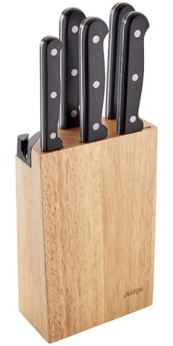 Judge Kitchen Knife Set Block with Knives and Knife Sharpener - 5 Piece Quality Stainless Steel, Razor Sharp Blades, Full Length Riveted Handles