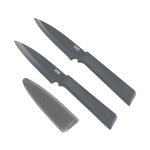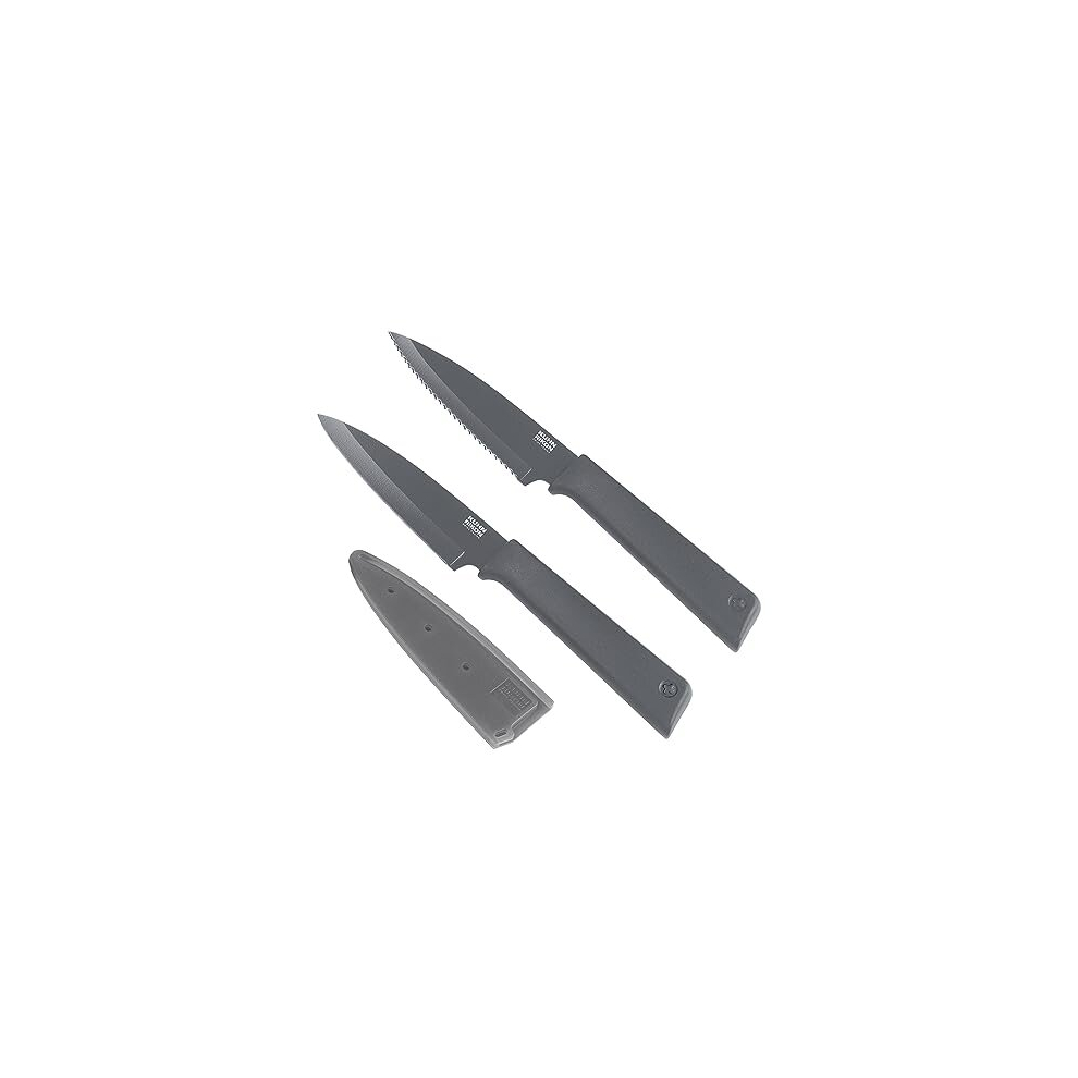 Kuhn Rikon Colori+ 2 Pc Grey Kitchen Knife Set (1x Paring Knife, 1x Serrated Kitchen Knife) Stainless Steel Blade Kitchen Knives Set. Sharp Knife Set – 3 Year Kuhn Rikon Kitchen Accessories Guarantee