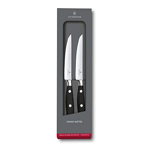 Victorinox Grand Maître, Steak Knife Set, 2 Pieces, Extra Sharp Blade, Straight Edge, 12 cm, Stainless Steel, Black