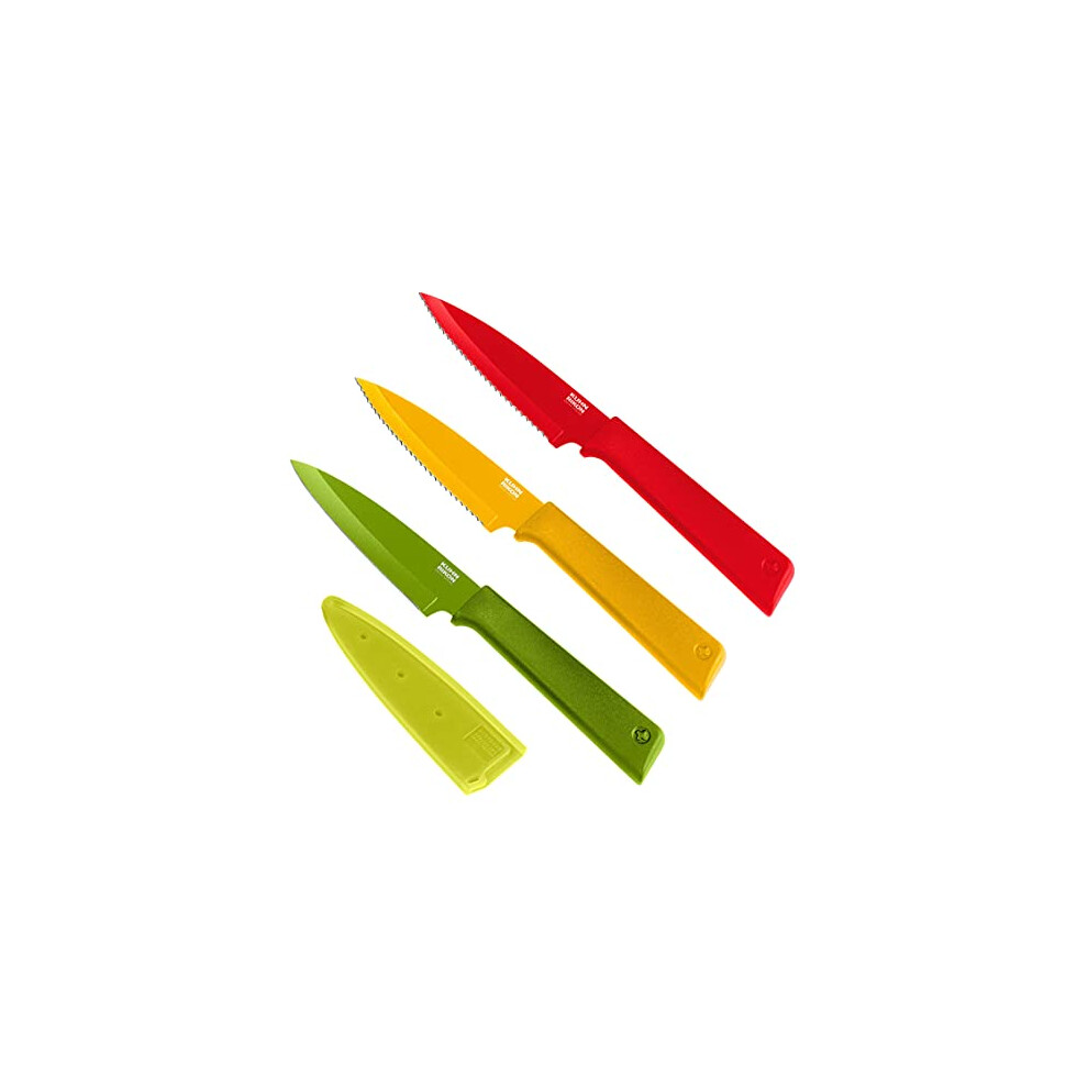 KUHN RIKON Colori+ Prep 3 Pc Kitchen Knife Set (1x Paring Knife, 2X Serrated Kitchen Knife) Stainless Steel Blade Kitchen Knives Set. Sharp Knife Set