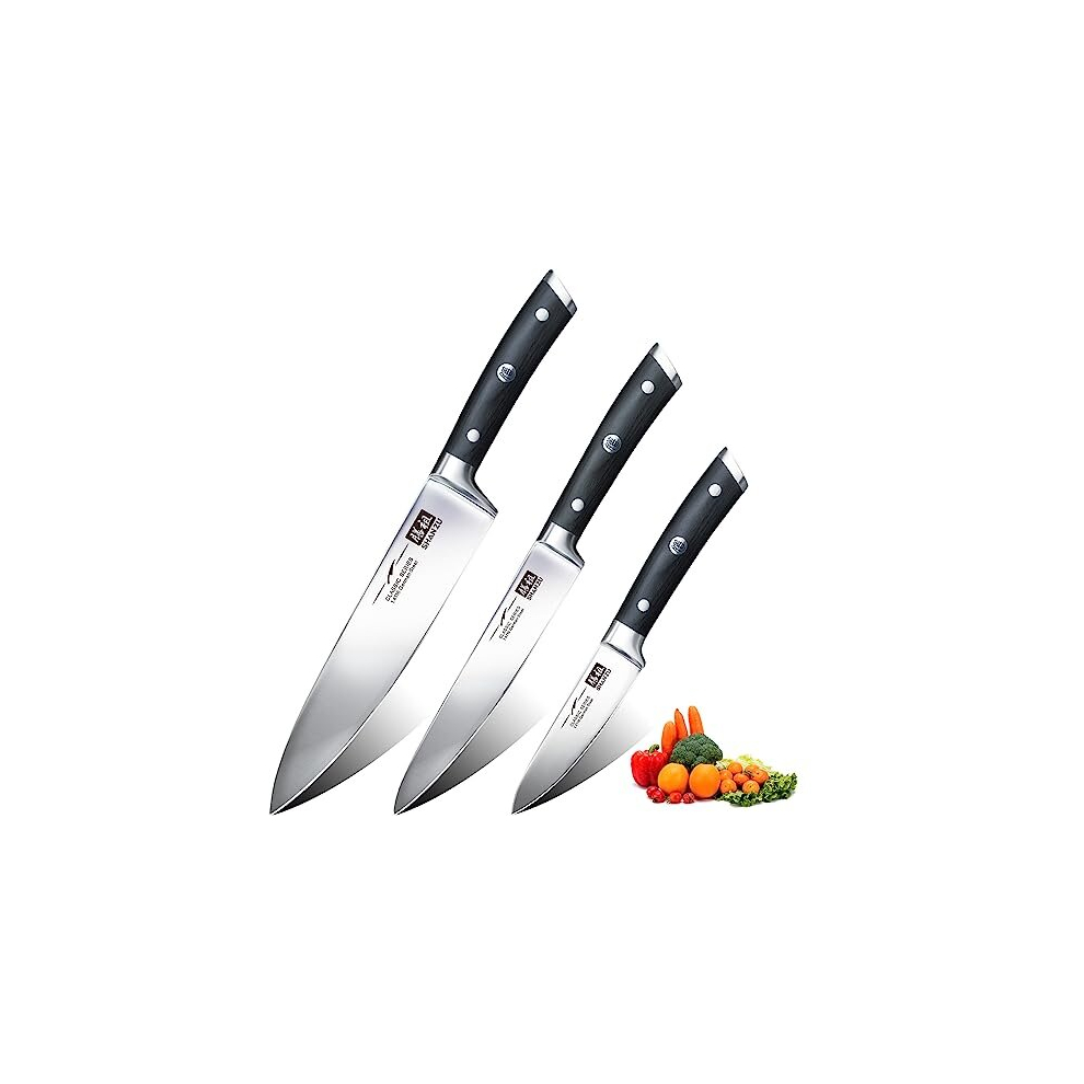 LIN ZHI REN Kitchen Knife Set, 3Piece Ultra-Sharp Chef's Knife Set, Includes Chef's Knife, Slicing and Paring Knife, High-Carbon Stainless Steel, Ergonomic Handle, Dishwasher Safe