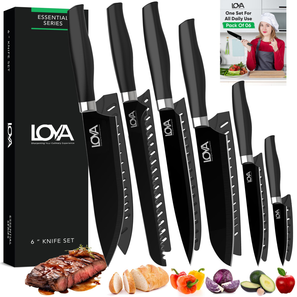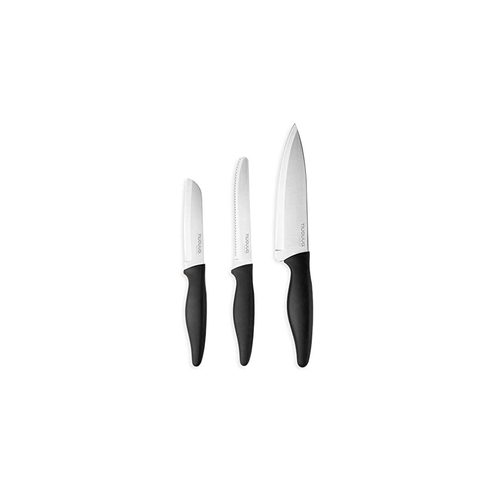 nuovva Sharp Kitchen Knife Set â 3pcs Black Kitchen Knives â Stainless Steel Non Stick Blades â Includes Chefs Knife, Tomato Knife and