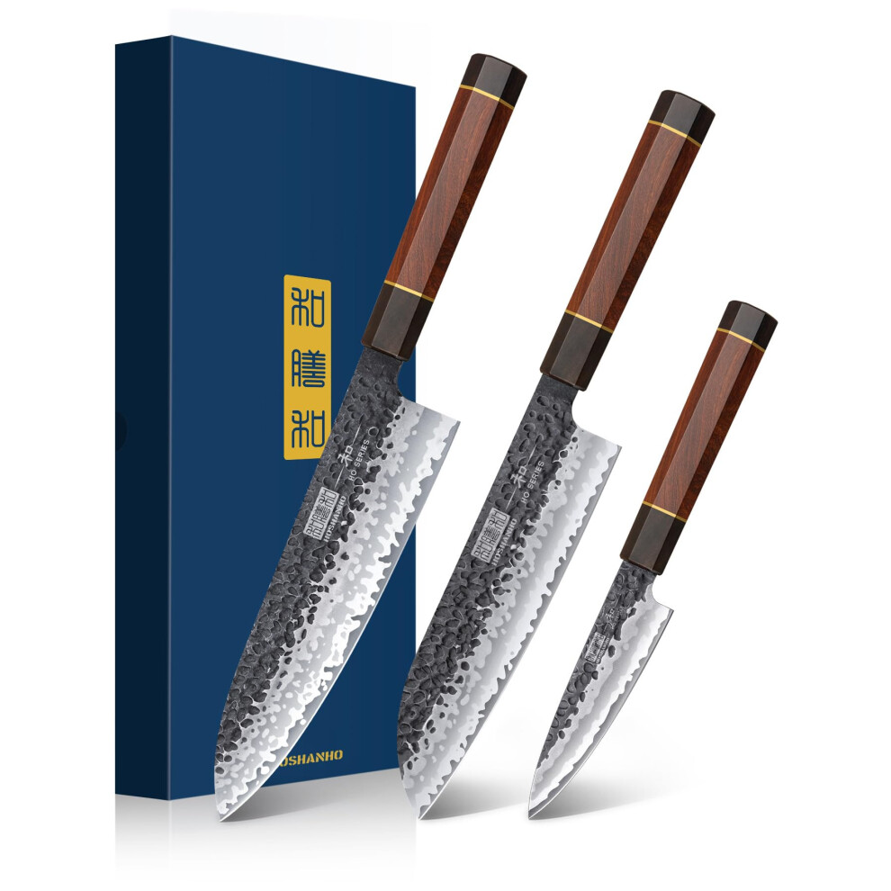 SHAN ZU Knife Set of 3 in Powder Steel, Japanese Kitchen Knives Sets High Carbon Ultra Sharp Chef Knife Set with Ergonomic Handles Utility Knife Set