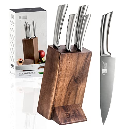 JF JAMES.F Knife Set, 6 Piece Kitchen Knife Set with Wooden Block Super Sharp Stainless Steel Knife Sets for Kitchen with Block