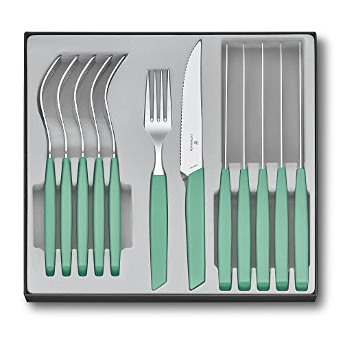Victorinox Swiss Modern 12-Piece Cutlery Set Sharp Steak/Pizza Knife, Dinner Fork, Green, Stainless Steel