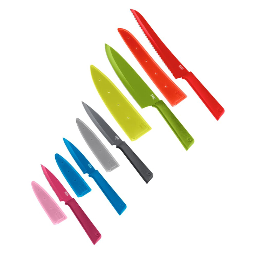 Kuhn Rikon Colori+ Everyday 5 Pc Kitchen Knife Set (Bread Knife, Chef Knife, Utility Knife, 2x Paring Knife) Kitchen Knives Set, Sharp Knife Set ? 3