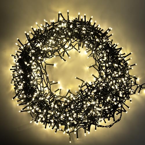 SHATCHI 720 Christmas Tree Cluster Lights Multifunction 8 Light Modes, Timer Green Cable Indoor/Outdoor Low Voltage Holiday Home Decorations, Warm White