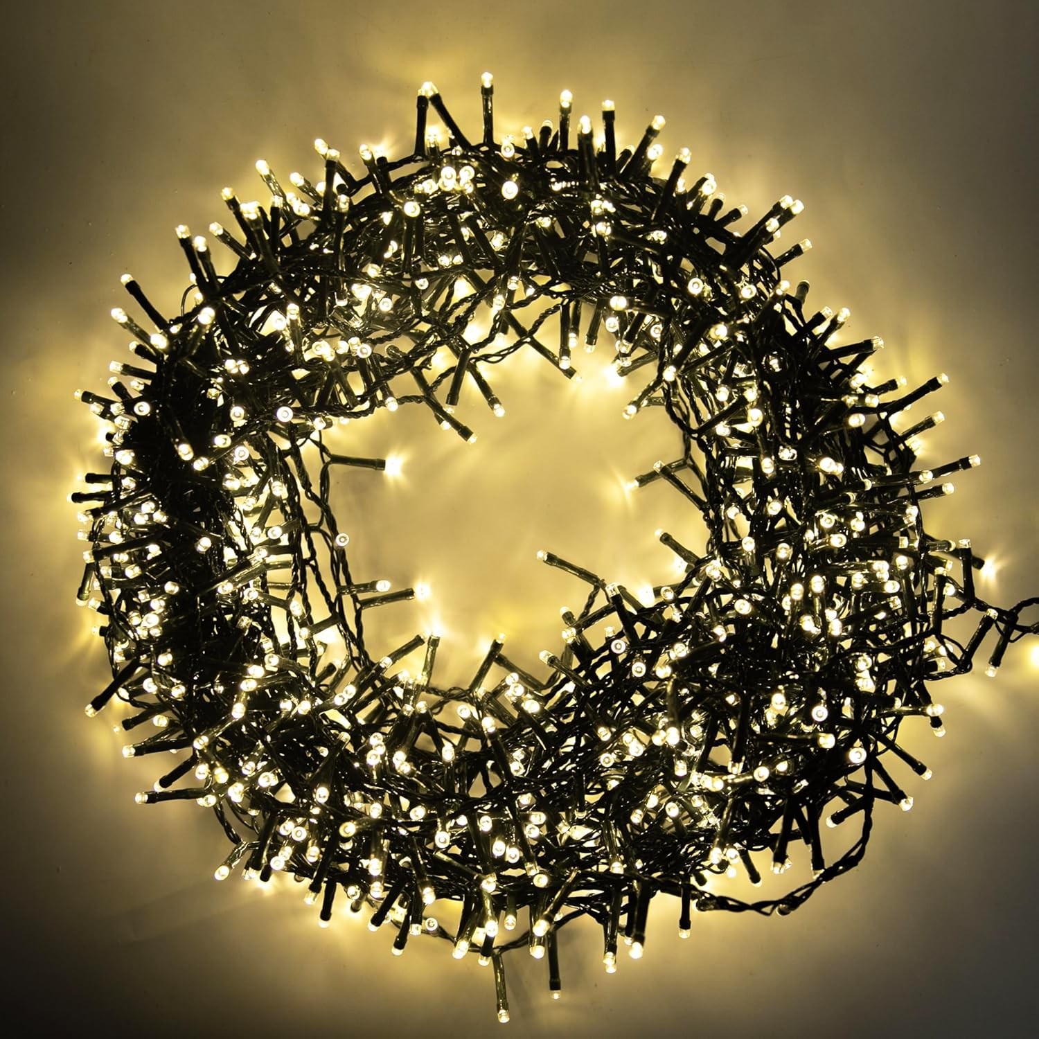 SHATCHI 1000LEDs Christmas Tree Compact Cluster Fairy Lights Multifunction 8 Light Modes, Timer Green Cable Indoor/Outdoor Low Voltage Holiday Home Decorations