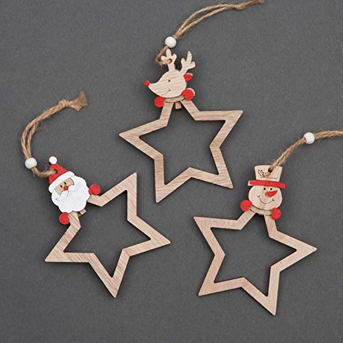 SHATCHI Christmas Tree Ornaments Wooden Aesthetic Hanging Decorations set of 3 pcs Xmas DIY Holiday Home Décor – Star Shape Santa, Reindeer, Snowman pieces(9cm)
