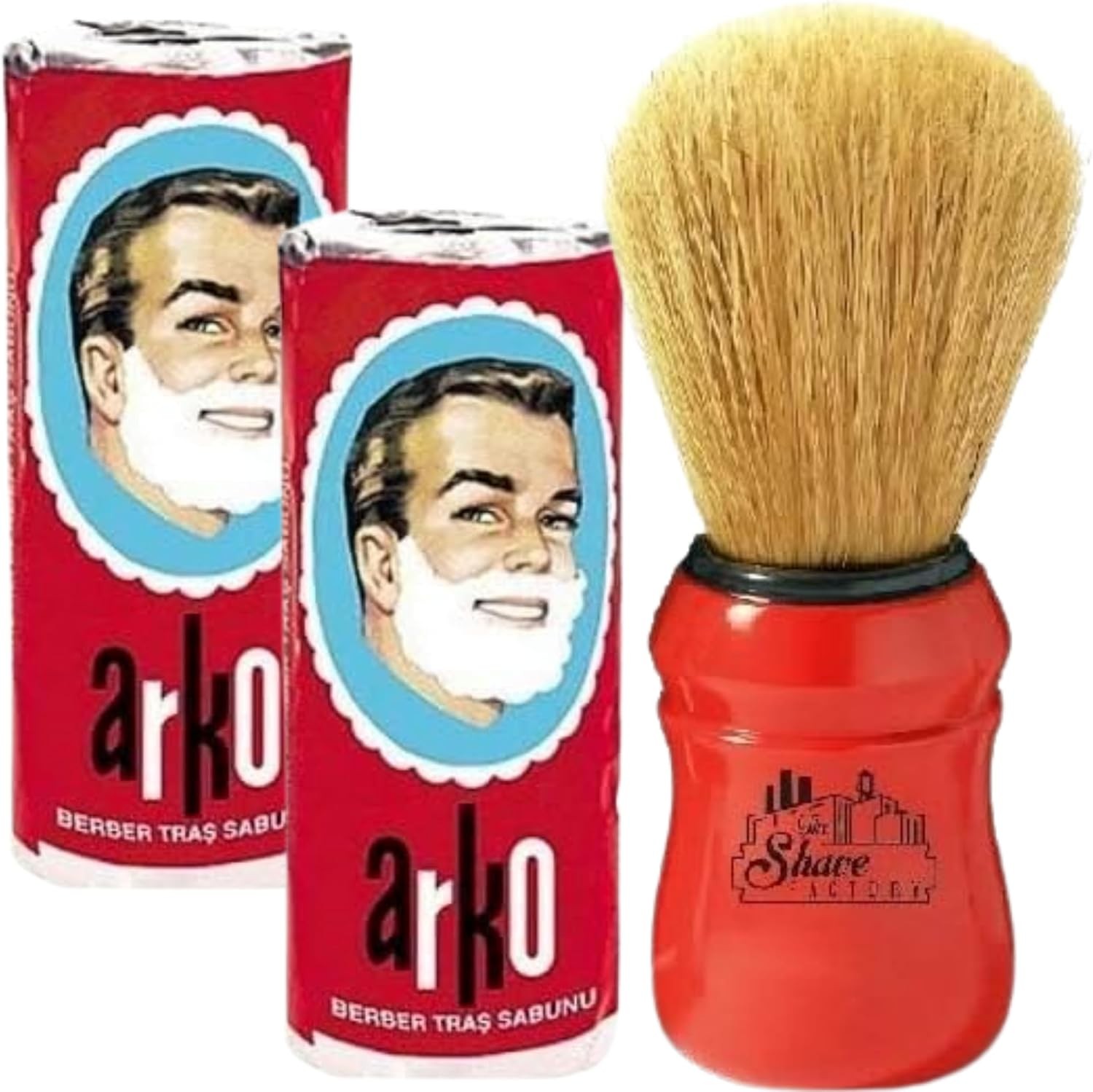 The Shave Factory 2 x Arko Shaving Cream Soap Stick and Omega Shaving Brush wit