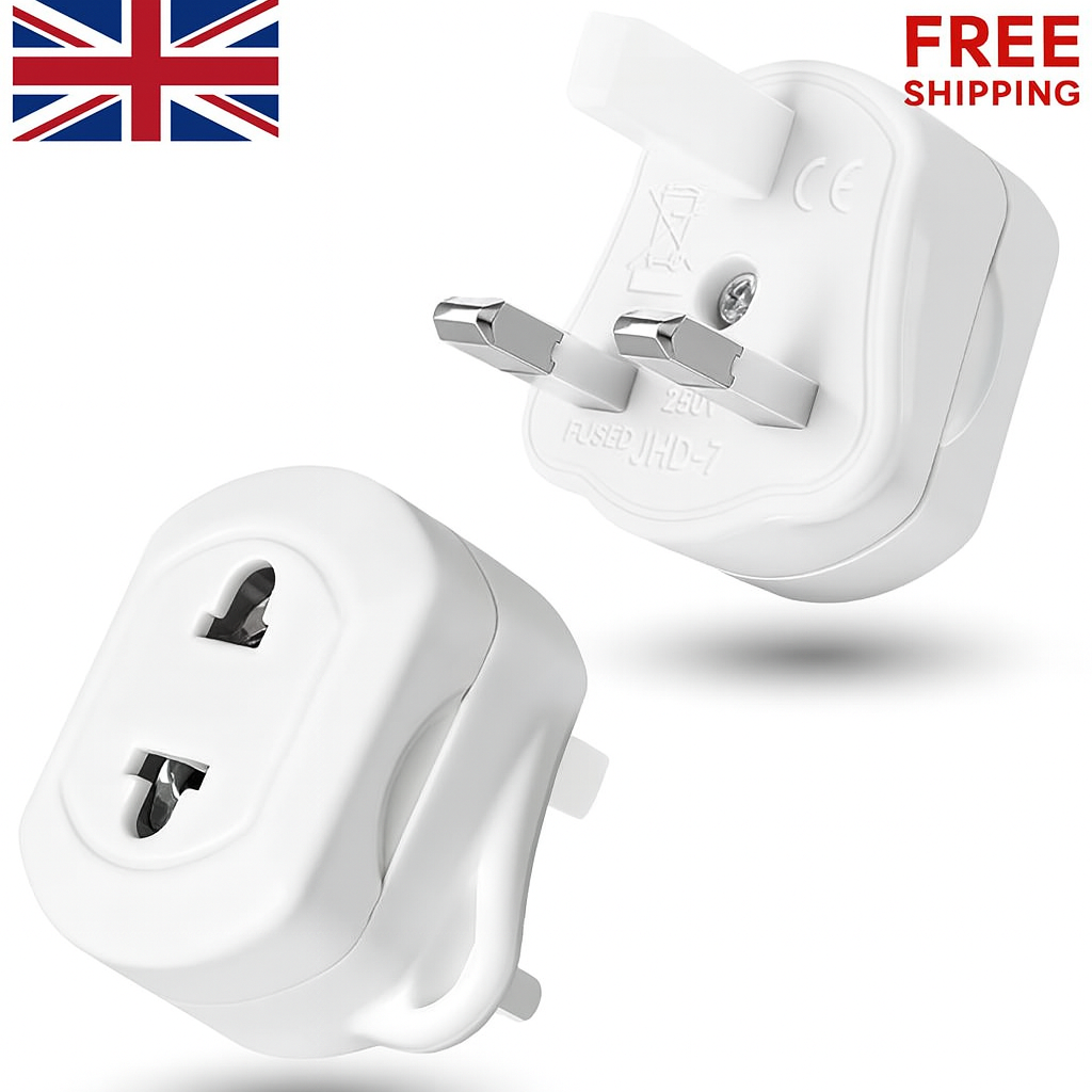 Toothbrush & Shaver Plug Adapter UK: 2-Pin to 3-Pin, Travel, Lightweight, Compat