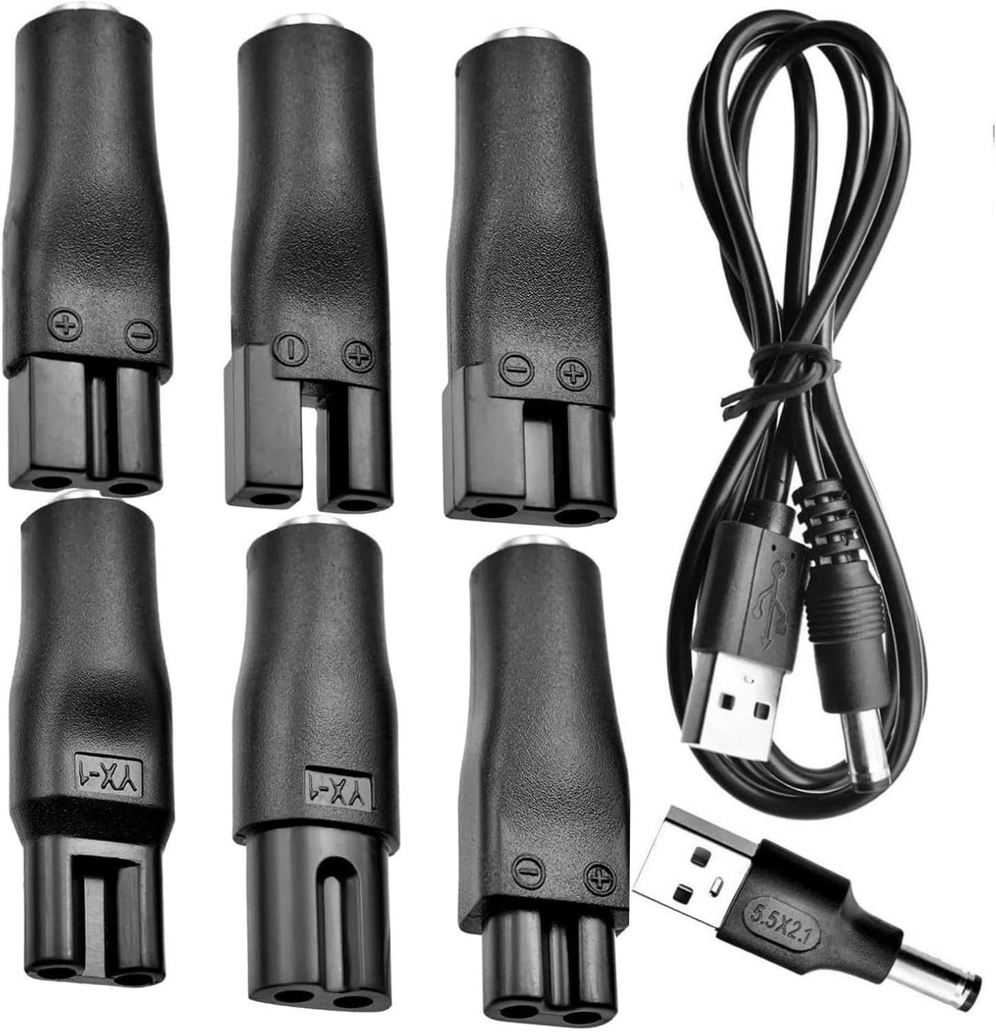 7 Piece Shaver Charger Adapter Kit USB 5V Multi Tip Power Set for Electric