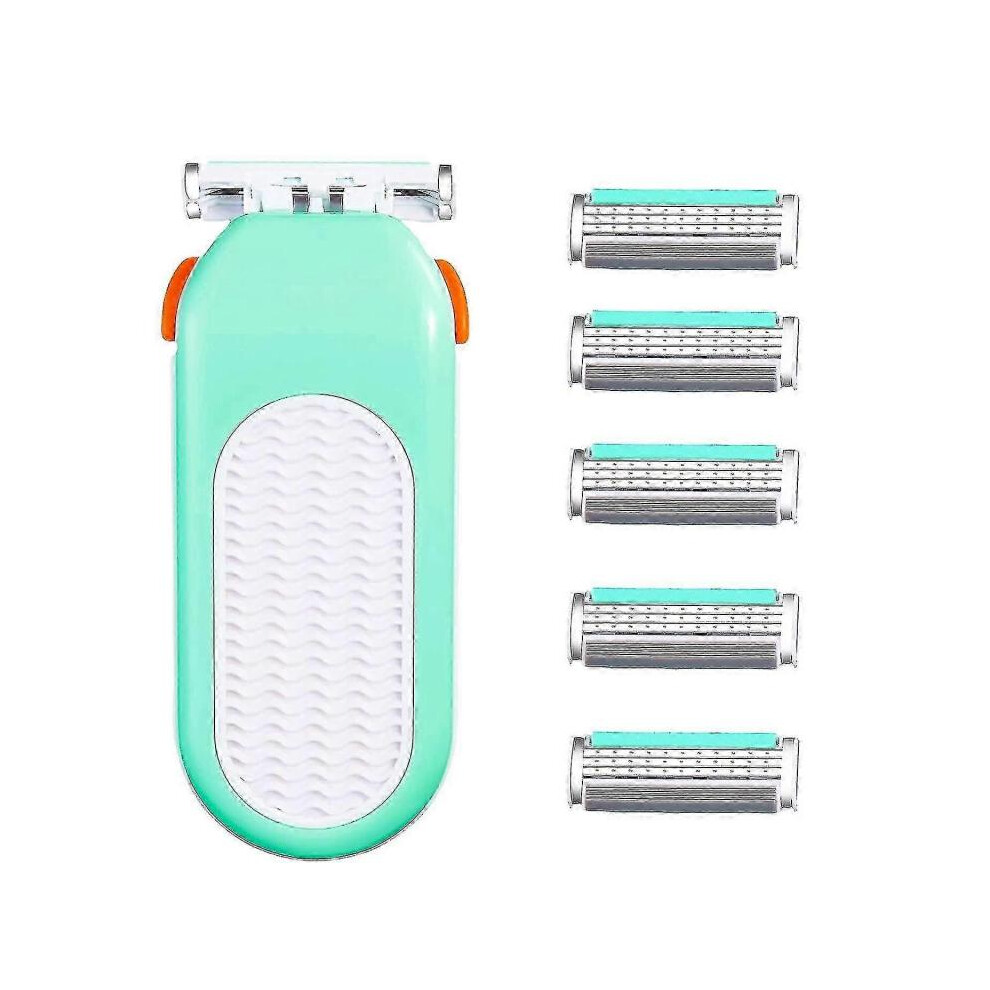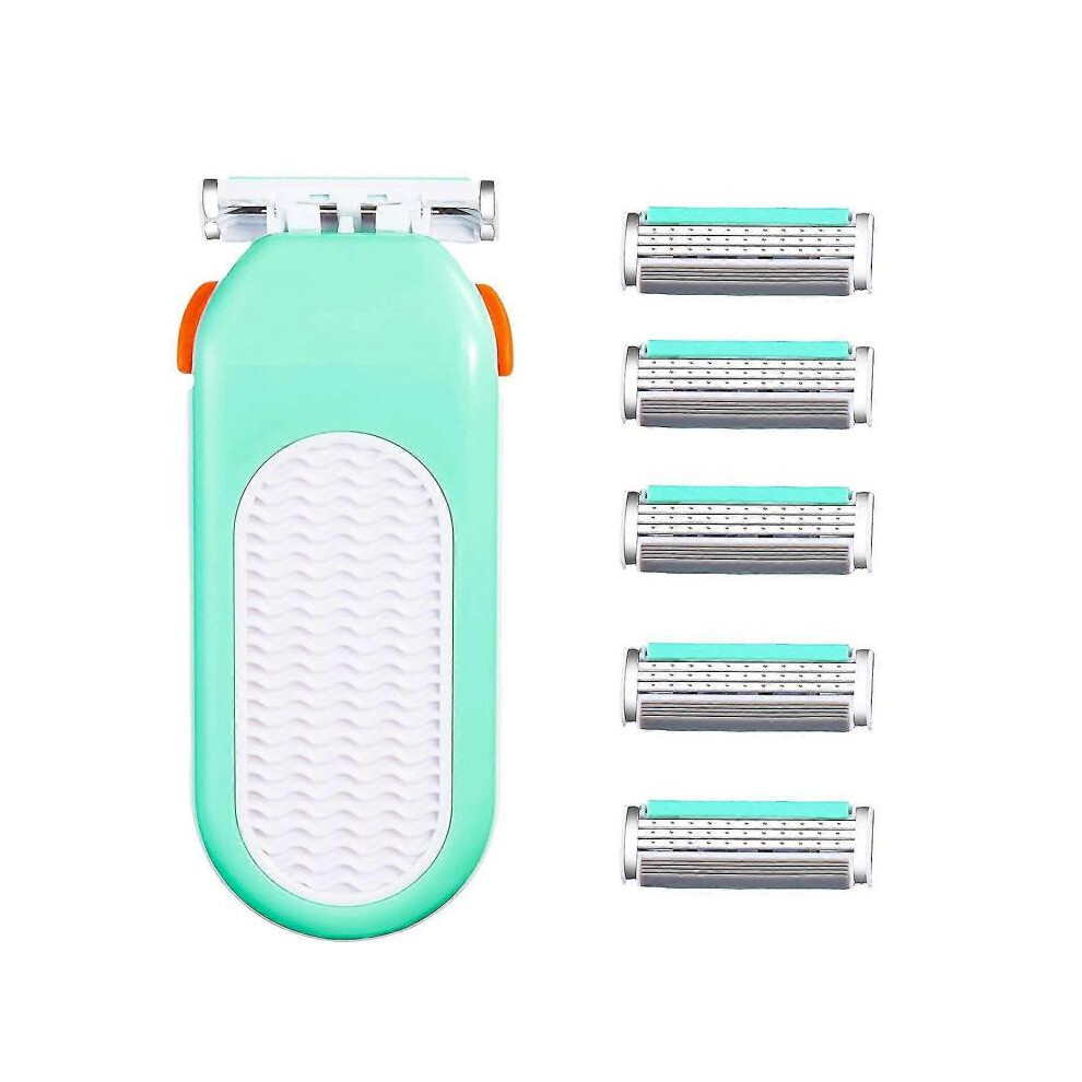 Razors for Women 6 Refills 3 Blades Shaver for Face Legs Bikini Area, Comfort Glid, Green