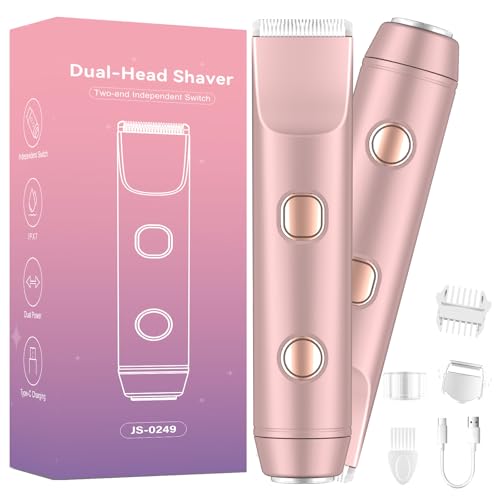Womens Shaver,Bikini Trimmer Women 2 in 1 Dual Head Waterproof Shaver,Wet and Dr
