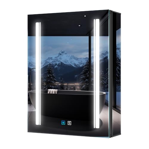 ELEGANT 600 x 700mm Stainless Steel Bathroom Mirror Cabinet with Shaver Socket and Light Infra-Red Sensor Switch Wall Mounted Makeup Bathroom Cabinet Soft Close