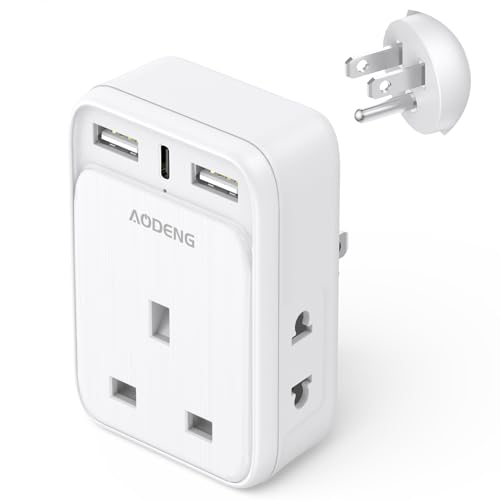 US to UK Plug Adapter 3 Outlets for American/European Electronic Devices, Shaver Plug Adaptor UK, Travel from United States, Canada, France, Spain, Germany,13A/3250W