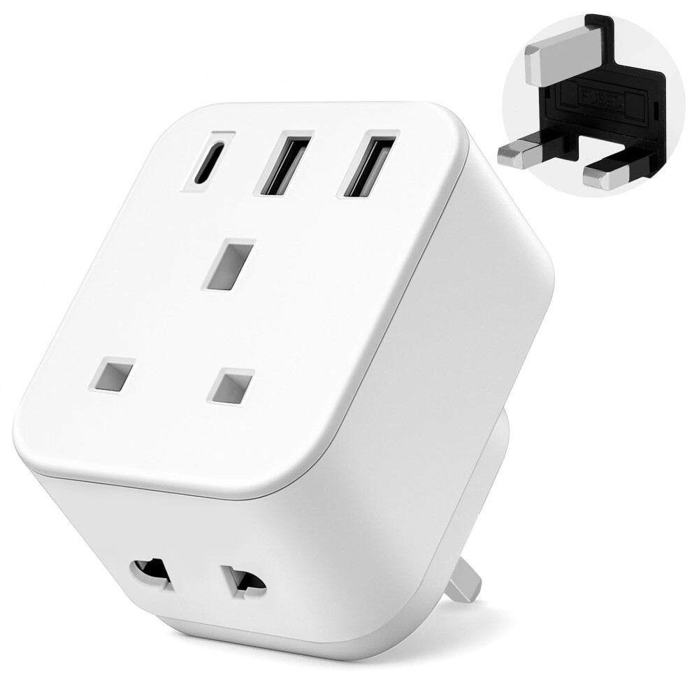 US to UK Plug Adapter 3 Outlets for American/European Electronic Devices, Shaver Plug Adaptor UK, Travel from United States, Canada, France, Spain, G