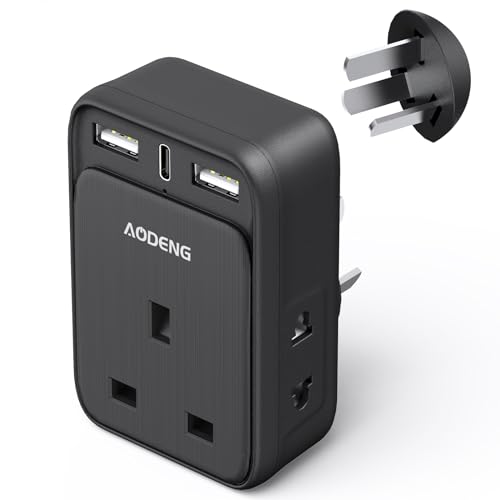 UK to Australia Plug Adapter, AODENG Australian Travel Adapter with 2 USB Ports and 1 30W Type C(5V/3.4A) and 2 Shaver Plug Input for UK to Australian New Zealand Fiji and more (Type I)