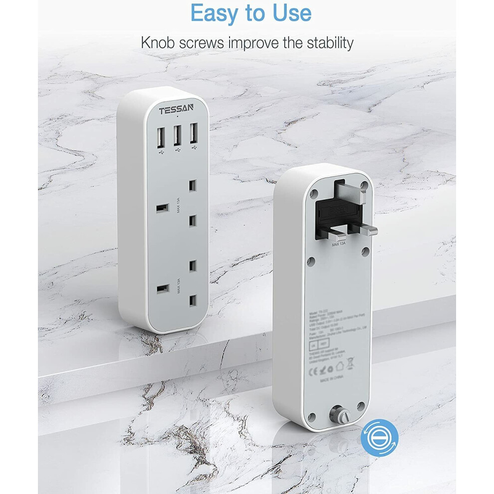 3 Pin Wall Socket Adapter Plug Extension & Shaver Adaptor with USB Port for Home