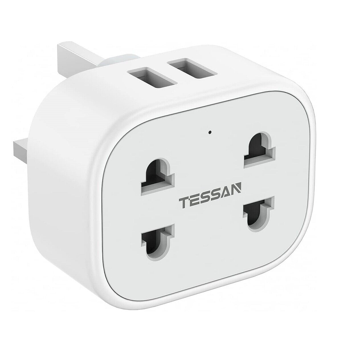 Double Shaver Plug Adaptor UK with 2 USB, TESSAN 2 Pin to 3 Pin Toothbrush Adapter Plug Socket for Bathroom Electric Razor, and EU US, 10A Fused White