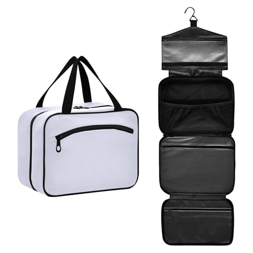 GuoChe Hanging make up bags for women with Hook, Designer necessities shaving kit bag for men for women traveling bolso de mano para hombre M, Marble Silver Neutral, M, Colorful