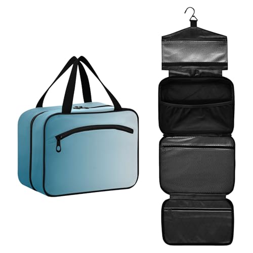 GuoChe Hanging cosmetic travel bags for women with Hook, Designer waterproof shaving kit bags for men for women traveling bathroom bolsas para maquillaje M, Blue Grey Gradient, M, Colorful