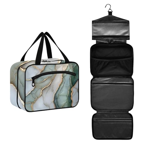 GuoChe Hanging travel bag with hanging with Hook, Designer essentials shaving kit bag for men for women traveling gym bolso de mano para hombre M, Marble Sage Green white, M, Colorful