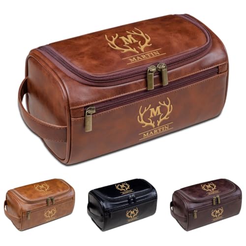 Custom Leather Toiletry Bag, Personalized Monogram Shaving Kit, Unique Gifts for Men, Groomsmen, Dad, & Husband