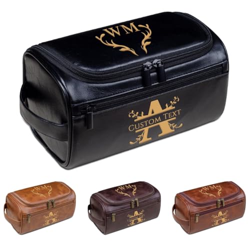 Custom Leather Toiletry Bag, Personalized Travel Dopp Kit with Name & Text, Shaving Kit Gift for Men, Husband, Dad, Boyfriend, Groomsmen, Father's Day, Christmas, Birthday