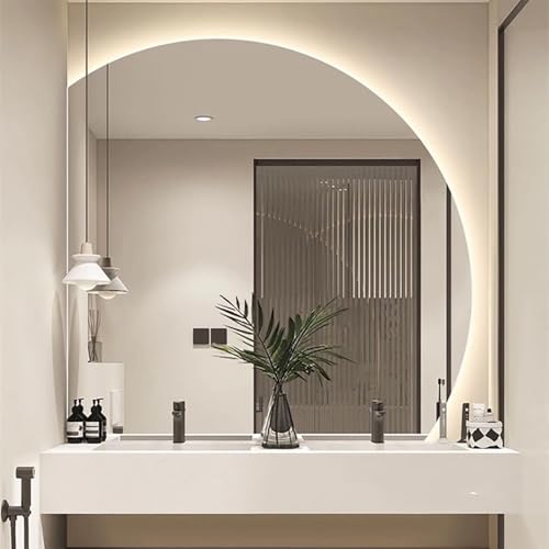 Aenmezen LED Defogging Wall Mirror Half Moon Makeup Mirror 32" Half Circle Bathroom Mirror 3-Color Dimmable 40" Large Backlit Light Up Mirror Shaving Cosmetic(Leftcut,28")