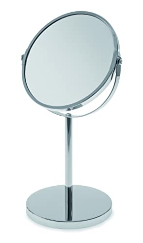 Premier Housewares Silver Effect Two Sided Small Shaving Mirror Round Standing Mirror With Swivel Function Perfect For Grooming And Shaving Makeup Mirror